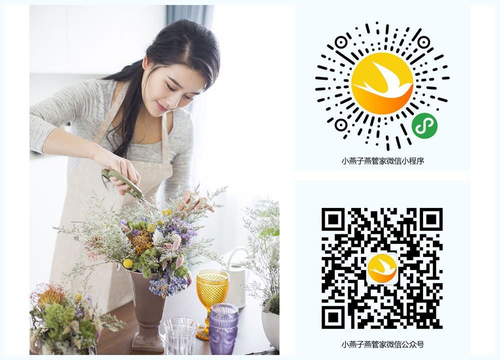 凡在小燕子燕管家平台订花的客户都可以报名参加在运营中心所在城市开展的插花SPA线下体验活动,专属定制的插花艺术沙龙,结合最时尚最前沿的潮流花艺,融合了初中高花艺技术,现场会安排专业导师为您讲解插花艺术、空间架构花艺、花束设计、东方式插花、绿植养护以及仿真花设计。订花不仅仅是小燕子燕管家为您提供的一项服务,更是一种生活品质升级的体验之旅。用户可通过小燕子燕管家微信小程序或微信公众号进行订花服务预约,平台支持按周订花、按月订花、按季订花等服务。预约成功订花平台会按照您的要求为您进行鲜花配送,分配服务人员,预约、付费、评价全程手机操作,简单便捷。